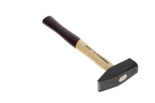 "longDescription": "Geschmiedeter Hammerkopf, schwarz lackiert, aus Vergütungsstahl, Schlagflächen induktiv gehärtet für harten Dauereinsatz, Ausführung nach DIN 1041, Dauerhafte Kennzeichnung von DIN, Hersteller und Gewicht, Sorgfältig auf 45° geschliffene Sicherheits-Fasr an Bahn und Pinne, Doppelt geschweifter Eschenstiel , Lackiertes Stielende verbessert die Haptik, Ringkeil fixiert den Hammerkopf durch 360°-Klemmkraft<br>",