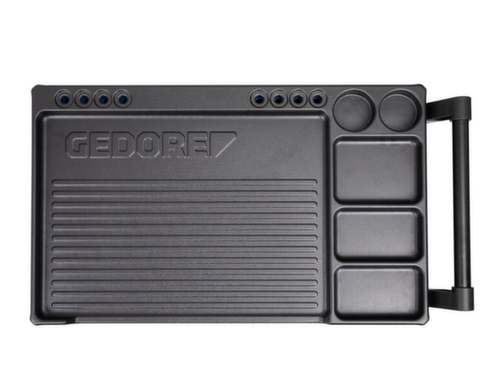 "longDescription": "Korpus: Maße: H 985 x B 775 x T 475 mm, Stahlblech, korrosionsbeständig und kratzfest pulverbeschichtet, Ablageplatte aus ABS-Kunststoff mit 3 Kleinteilefächern, 2 Dosenablagen, 8 Schraubendreherablagen, Wendig und leicht zu steuern durch Fahr-Lenk-Griff, Seitenwände mit Euro-Lochung 10 x 38 mm zur Befestigung von Haken und Werkzeugen, Sicherheit durch Fersenschutz für Personen, Schubladen: Zentralverriegelung mit Zylinderschloss, Kugelgelagerte Führungsschienen, Individuell bestückbar durch Längs- und Querteiler (auch einzeln lieferbar), Tragfähigkeit pro Schublade 40 kg, GEDORE Hochleistungs-Fahrwerk: Gesamttragkraft statisch: 900 kg / dynamisch: 650 kg, 2 rollengelagerte GEDORE Hochleistungsräder (Bockrollen Ø 200 mm), 2 kugelgelagerte GEDORE Leichtlaufräder (Lenkrollen Ø 125 mm), beide mit Totalfeststeller, GEDORE Achskonstruktion bewirkt auch bei maximaler Belastung: Leichtlauf, Wendigkeit und Spurtreue, Sortiment: Werkzeuge in metrischen Abmessungen, Mit GEDORE Check-Tool-System: Vollständigkeitsprüfung durch 2-farbige Schaumstoffeinlagen, Jedes Werkzeug liegt verrutschsicher in eigener Aussparung, durch Griffmulden leicht herausnehmbar, Resistent gegen Öle und Fette<br>",