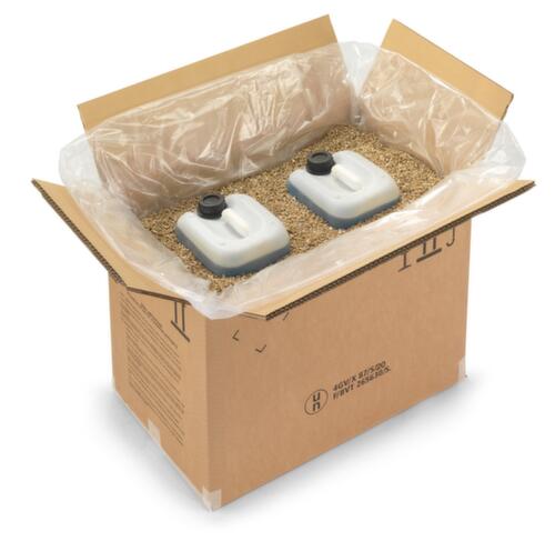Geeignet für für alle Gefahrgüter, die in einem Karton versendet werden dürfen. Mit UN-Zulassung 4GV für RID/ADR (Land), IMDG-Code (See) und IATA (Luft). aus Wellpappe. Hergestellt aus 50 % recyceltem Material.