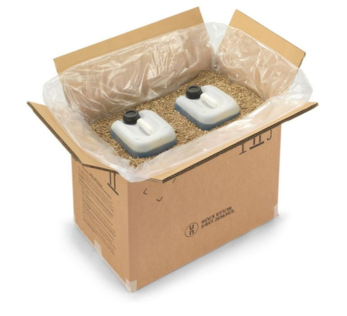 Geeignet für für alle Gefahrgüter, die in einem Karton versendet werden dürfen. Mit UN-Zulassung 4GV für RID/ADR (Land), IMDG-Code (See) und IATA (Luft). aus Wellpappe. Hergestellt aus 50 % recyceltem Material.