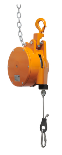 "longDescription": "<h2>Gewichtsausgleicher</h2><strong>für ermüdungsfreies Werkzeughandling</strong><br><ul><li><strong>Mehr Flexibilität</strong> - frei dreh- und schwenkbarer Sicherheitshaken</li><li><strong>Lasten einfach angehängt</strong> - mit Schraubkarabinerhaken</li><li><strong>Genormte Absturzsicherung</strong> - Sicherungskette nach DIN 15112 </li><li><strong>Sicheres Arbeiten</strong> - Vorrichtung zum Blockieren der Seiltrommel und Federbruchsicherung</li><li><strong>Stufenlose Traglastverstellung</strong> über Einstellschnecke</li><li>Einfacher Austausch des Tragseils</li></ul><br><strong>Traglast bis 21 kg:</strong><br><ul><li>Form- und schlagstabiles Gehäuse aus Kunststoff</li><li>Sicherheitshaken als isolierte Aufhängung</li><li>Tragseil über Seilschloss stufenlos verstellbar</li><li>Pressklemme zur Sicherung des Seilendes</li></ul><br><strong>Traglast bis 55 kg:</strong><br><ul><li>Gehäuse und Trommel aus hochfestem Aluminium </li><li>Trommel einfach kugelgelagert</li></ul><br><strong>Traglast bis 100 kg:</strong> <br><ul><li>Gehäuse und Trommel aus hochfestem Aluminium </li><li>Aufhängung des Sicherheitshakens horizontal positionierbar</li><li>Sicherungsdehnkette als Absturzsicherung </li><li>Schutz der Tragfeder durch patentierten Freilauf</li><li>Überlastschutz durch Seilauszugsbegrenzung</li><li>Trommel doppelt kugelgelagert</li><li>Tragseil über Seilschloss stufenlos verstellbar</li><li>Pressklemme zur Sicherung des Seilendes</li></ul><br><strong>Bitte beachten Sie!</strong><br><br>Gem. BGR 500 ist die jährliche Prüfung der Federzüge und Gewichtsausgleicher vorgeschrieben. Prüf- und Wartungsservice durch befähigte Prüftechniker auf Anfrage.<br>",