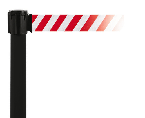 Die wichtigsten Maße des Absperrsystems auf einen Blick:Fuß rund. Gurt in rot/weiß. Pfosten aus PVC in schwarz. Fuß aus Vollgummi in schwarz.