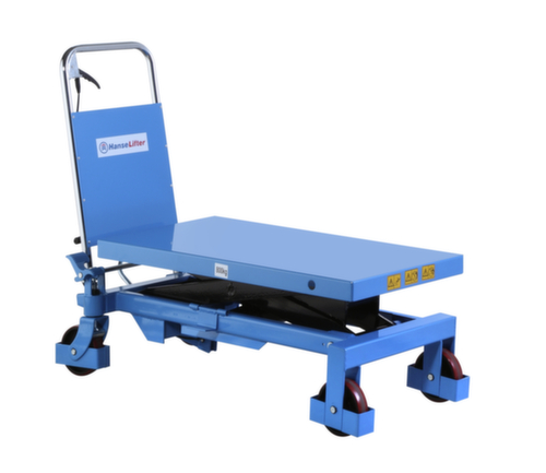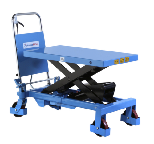Aus Stahl mit schlag- und kratzfester Pulverbeschichtung in RAL5012 Lichtblau. Hubausführung manuell über Fußpedal. Einfachschere aus Stahl mit schlag- und kratzfester Pulverbeschichtung in schwarz. Verwindungssteife Stahlkonstruktion. Mit Schiebebügel. 2 Lenk- und 2 Bockrollen mit Polyurethan-Bereifung. Feststeller an zwei Lenkrollen gewähren bei Bedarf stets einen sicheren Stand.
