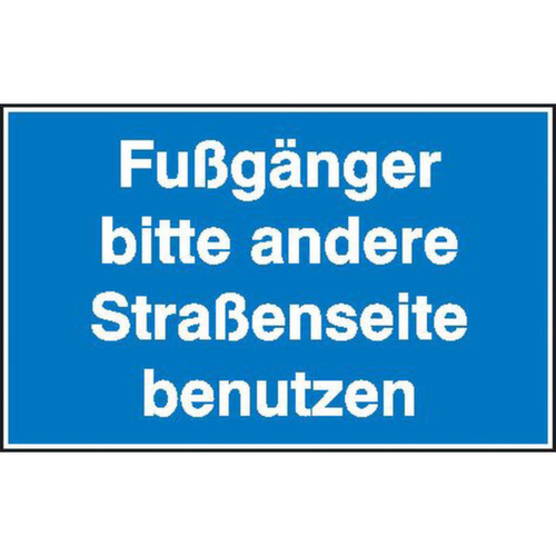 Symbol/Text: Fußgänger bitte andere Straßenseite benutzen.