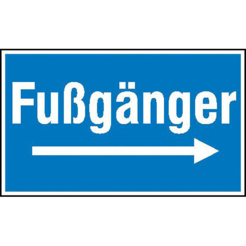 Symbol/Text: Fußgänger (mit Richtungspfeil nach rechts). Richtungsangabe über Pfeil rechts.