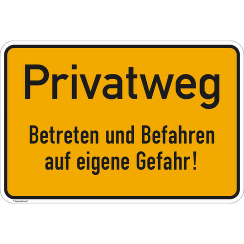 Symbol/Text: Privatweg - Betreten und Befahren auf eigene Gefahr!.