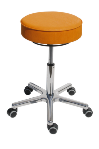 "longDescription": "<h2>Höhenverstellbarer Drehhocker</h2><strong>extra bequem gepolstert</strong><br><ul><li><strong>Stufenlose Höhenverstellung</strong> über Gasfeder mit Ringauslösung</li><li><strong>Extra bequem</strong> - Sitz mit Komfortpolsterung und Kunstlederbezug</li><li><strong>Uneingeschränkt mobil</strong> durch schmales Fußkreuz aus Aluminium</li></ul><br>Der Drehhocker kombiniert perfekt Design und Funktionalität. Die stabile Gesamtkonstruktion hat eine Garantie von 5 Jahren.<br><br>Die drehbare Sitzfläche ist aus zwei Verbundschaumlagen und somit weich und bequem. Der strapazierfähige und pflegeleichte Kunstlederbezug ist unempfindlich gegen Flecken und einfach sauber zu halten. Die Sitzhöhe des Drehhockers ist durch eine Gasfeder mit Ringauslösung stufenlos für jede Körpergröße individuell verstellbar. <br><br>Das schmale Fußkreuz ist aus robustem Aluminium. Mit den fünf Doppelrollen ist der Hocker, auch bei Belastung, immer einfach zu verrollen. Dies ist besonders bei Arbeiten an verschiedenen Stationen besonders praktisch.<br>",