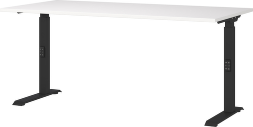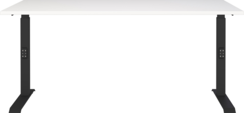 Platte aus Spanplatte mit kratzfester und pflegeleichter Melaminharzbeschichtung in Dekor weiß. Kante Alle Kanten sind durch schlagfeste ABS-Umleimer vor unschönen Rissen und Ausbrechen geschützt. C-Fußgestell aus Metall mit schlag- und kratzfester Pulverbeschichtung in schwarz. Höhenverstellung durch Mechanik. Gestell mit nivellierbaren Kunststoffgleitern, mit denen sich Bodenunebenheiten optimal ausbessern lassen.