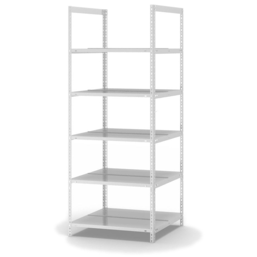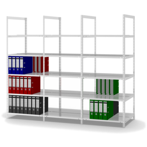 "metaTitle": "hofe Akten-Schraubregal Anbaufeld zur beidseitigen Nutzung, 5 Böden, RAL7035 Lichtgrau - Lagerbedarf",