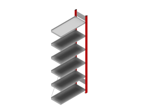 Anbauregal mit 1 Ständerrahmen, Diagonalverstrebungen und Ebenen gem. Angebot
