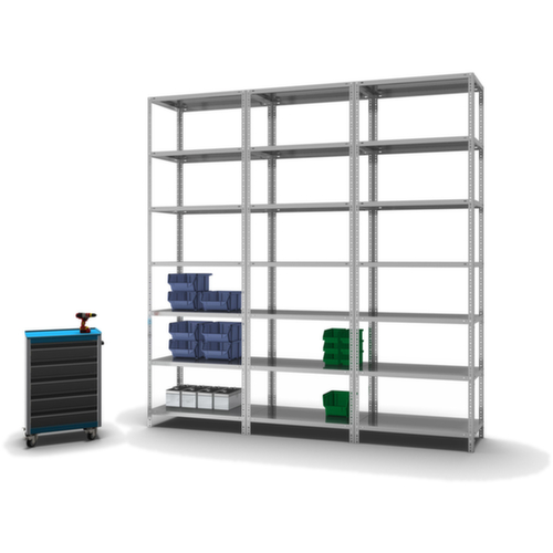 Die wichtigsten Maße des hofe Lagerregals auf einen Blick:7 Ebene(n) mit Stahlboden. 3-fache Sicherheitsabkantung mit 40 mm Höhe und geschlossenen Eckbereichen sorgen für eine hohe Stabilität und Sicherheit gegen Verletzungen. Fachhöhen je nach Einsatzzweck und Ihrem Bedarf im Raster von 25 mm verstellbar. Nutzung einseitig - zur Aufstellung an der Wand konzipiert. Konstruktion aus Stahl, Ständer mit korrosionsschützender Zinkbeschichtung, Ebenen mit korrosionsschützender Zinkbeschichtung.