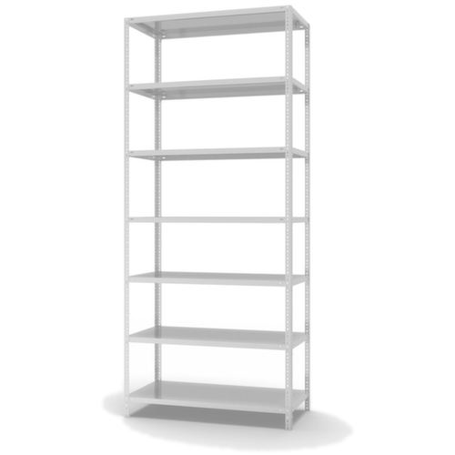 Die wichtigsten Maße des hofe Lagerregals auf einen Blick:7 Ebene(n) mit Stahlboden. 3-fache Sicherheitsabkantung mit 40 mm Höhe und geschlossenen Eckbereichen sorgen für eine hohe Stabilität und Sicherheit gegen Verletzungen. Fachhöhen je nach Einsatzzweck und Ihrem Bedarf im Raster von 25 mm verstellbar. Nutzung einseitig - zur Aufstellung an der Wand konzipiert. Konstruktion aus Stahl, Ständer verzinkt mit Kunststoffbeschichtung in RAL7035 Lichtgrau, Ebenen verzinkt mit Kunststoffbeschichtung in RAL7035 Lichtgrau.