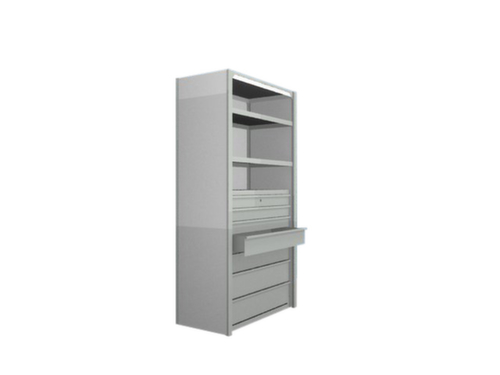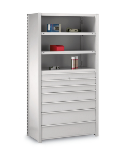 "metaDescription": "hofe Schubladenblock für Steckregal, Höhe x Tiefe 1025 x 438 mm - f. Steckregal, HxBxT 1025x918x438mm, RAL7035",