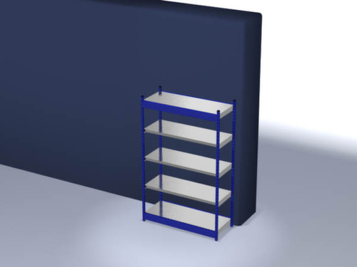 Die wichtigsten Maße des hofe Lagerregals auf einen Blick:5 Ebene(n) mit Stahlboden. Ebenen mit Sicherheitskantung zum Schutz vor Verletzungen. 3-fache Sicherheitsabkantung mit 40 mm Höhe sorgen für eine hohe Stabilität und Sicherheit gegen Verletzungen. Fachhöhen je nach Einsatzzweck und Ihrem Bedarf im Raster von 50 mm verstellbar. Aufstellwinkel gerade. Nutzung beidseitig - flexible Aufstellung frei im Raum möglich. Hohe Stabilität durch Längstraversen. Konstruktion aus Stahl, Ständer mit strapazierfähiger Kunststoffbeschichtung in RAL5010 Enzianblau, Ebenen mit korrosionsschützender Zinkbeschichtung.