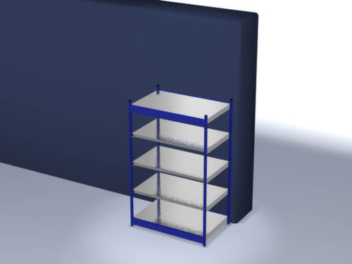 Die wichtigsten Maße des hofe Lagerregals auf einen Blick:5 Ebene(n) mit Stahlboden. Ebenen mit Sicherheitskantung zum Schutz vor Verletzungen. 3-fache Sicherheitsabkantung mit 40 mm Höhe sorgen für eine hohe Stabilität und Sicherheit gegen Verletzungen. Fachhöhen je nach Einsatzzweck und Ihrem Bedarf im Raster von 50 mm verstellbar. Aufstellwinkel gerade. Nutzung beidseitig - flexible Aufstellung frei im Raum möglich. Hohe Stabilität durch Längstraversen. Konstruktion aus Stahl, Ständer mit strapazierfähiger Kunststoffbeschichtung in RAL5010 Enzianblau, Ebenen mit korrosionsschützender Zinkbeschichtung.