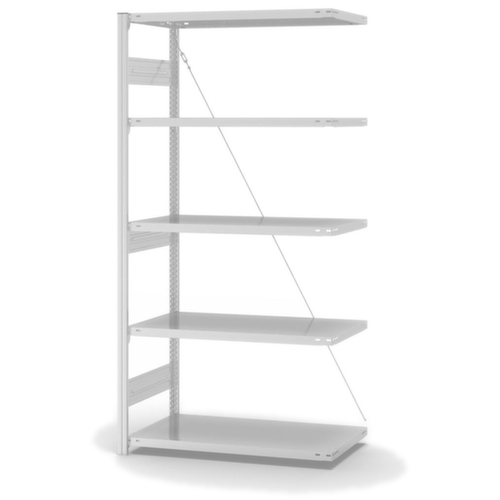 Anbauregal mit 1 Ständerrahmen, Diagonalverstrebungen und Ebenen gem. Angebot