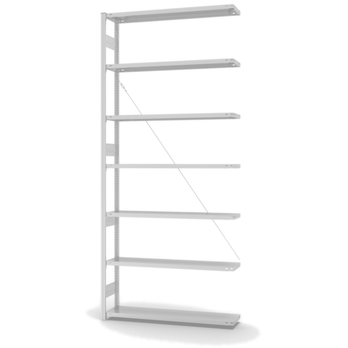 Anbauregal mit 1 Ständerrahmen, Diagonalverstrebungen und Ebenen gem. Angebot
