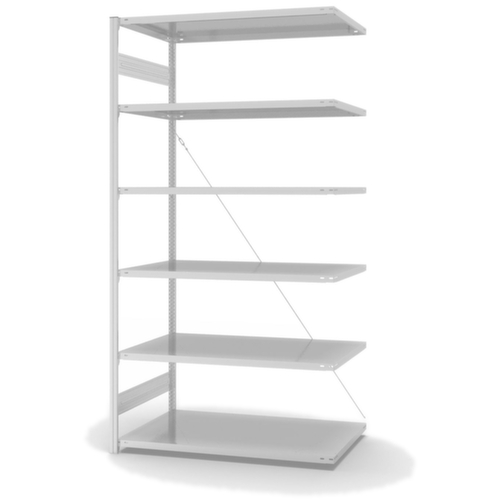 Anbauregal mit 1 Ständerrahmen, Diagonalverstrebungen und Ebenen gem. Angebot