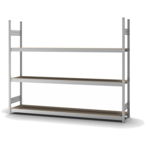 "metaDescription": "hofe Weitspannregal mit Holzböden - Anbaufeld, HxBxT 2000x2270x435mm, Fachl. 350kg, 3xHolzboden, einseitig, Ständer verzinkt, Traversen verzinkt",