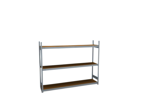 "metaDescription": "hofe Weitspannregal mit Holzböden - Anbaufeld, HxBxT 2000x1520x535mm, Fachl. 350kg, 3xHolzboden, einseitig, Ständer verzinkt, Traversen verzinkt",