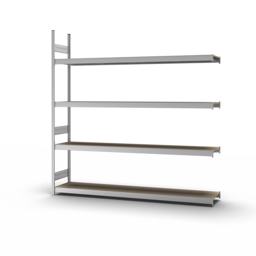 "metaDescription": "hofe Weitspannregal mit Holzböden - Anbaufeld, HxBxT 2500x2270x435mm, Fachl. 350kg, 4xHolzboden, einseitig, Ständer verzinkt, Traversen verzinkt",