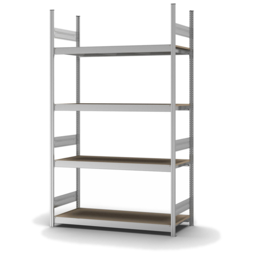 "metaDescription": "hofe Weitspannregal mit Holzböden - Anbaufeld, HxBxT 2500x2020x535mm, Fachl. 350kg, 4xHolzboden, einseitig, Ständer verzinkt, Traversen verzinkt",