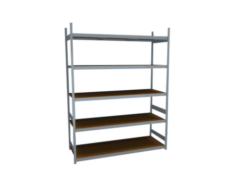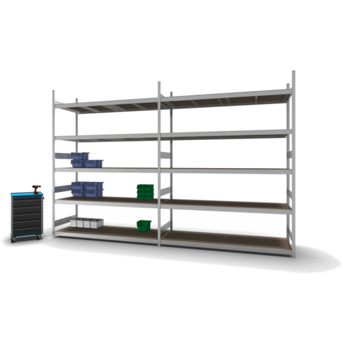"metaDescription": "hofe Weitspannregal mit Holzböden - Anbaufeld, HxBxT 3000x2520x835mm, Fachl. 350kg, 5xHolzboden, einseitig, Ständer verzinkt, Traversen verzinkt",