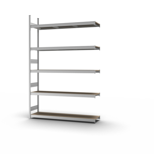 "metaDescription": "hofe Weitspannregal mit Holzböden - Anbaufeld, HxBxT 3000x1520x435mm, Fachl. 350kg, 5xHolzboden, einseitig, Ständer verzinkt, Traversen verzinkt",