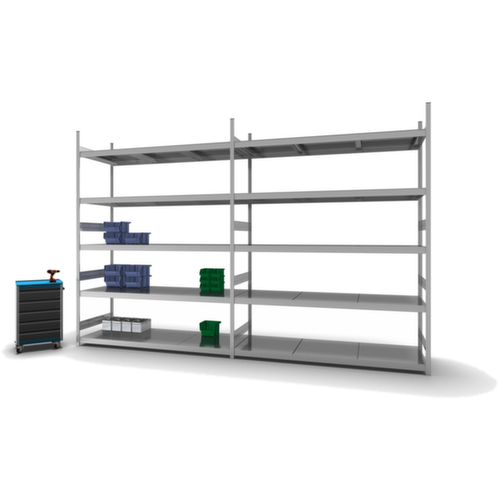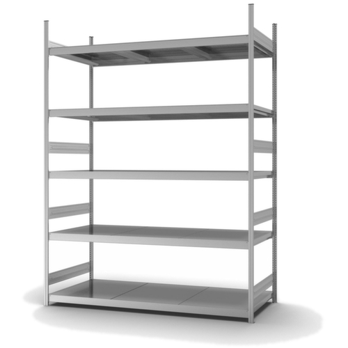 "metaDescription": "hofe Weitspannregal mit Stahlböden - Anbaufeld, HxBxT 3000x2020x835mm, Fachl. 350kg, 5xStahlboden, beidseitig, Ständer verzinkt, Ebenen verzinkt",