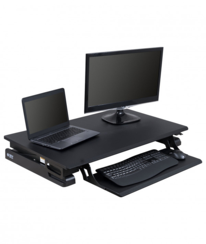 "metaDescription": "Hvst. Schreibtischaufsatz - HxBxT 135-460x940x585mm, m. Tastaturablage, Platte schwarz, Gestell schwarz",