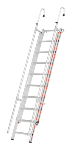"longDescription": "<h2>Einhänge-Schiebeleiter</h2><strong>platzsparend bei Transport und Lagerung</strong><br><ul><li><strong>Sicher arbeiten</strong> - Holme mit Einhängehaken</li><li>Trittsicher profilierte Sprossen</li><li><strong>Sichere Nutzung</strong> durch stufenlos ausziehbare Handläufe mit Schnellverschluss</li><li>Komfortabler Leiterninnenbreite von 500 mm</li></ul>",