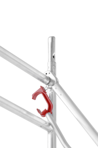 wetterfeste, rutschsichere Bühne, HYMER-Lifter zum Ein- und Aushängen von Diagonalen und Verstrebungen