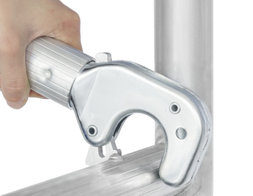wetterfeste, rutschsichere Bühne, HYMER-Lifter zum Ein- und Aushängen von Diagonalen und Verstrebungen