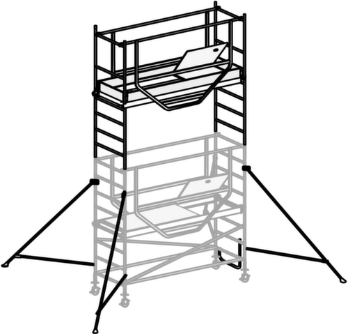 "longDescription": "<h2>Fahrgerüst ADVANCED SAFE-T</h2><strong>dank modularem Aufbau variabel einsetzbar</strong><br><ul><li><strong>Schneller Aufbau</strong> durch praktische Klickverschlüsse an Streben und Diagonalen- <strong>Sicher arbeiten auch im Außenbereich</strong> - Bühne mit rutschhemmendem und wetterfestem Belag</li><li><strong>Bequemer Ein- und Ausstieg</strong> über Durchgangsluke</li><li><strong>Maximale Sicherheit</strong> durch umlaufendes Geländer</li><li><strong>Sicherer Stand</strong> durch Ausleger</li><li><strong>Leicht und robust</strong> - geschweißte Rohrkonstruktion aus Aluminium</li><li>Bühne belastbar bis 200 kg</li></ul><strong>Sie haben die Wahl:</strong><br><ul><li><strong>Mobil einsetzbar auch bei Bodenunebenheiten</strong> - zusammengestellte Module mit 4 höhenverstellbaren Lenkrollen- <strong>Noch mehr Standsicherheit</strong> - ab 9,25 m Reichhöhe mit teleskopierbaren Auslegern mit Bajonett-Verschluss</li></ul>",