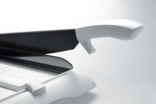 "longDescription": "<h2>Schneidemaschine</h2><strong>für exaktes und schnelles Schneiden</strong><br><ul><li><strong>Besonders sichere Anwendung</strong> - mit Messerschutzautomatik, die transparente Kunststoffscheibe hebt und senkt sich mit dem Messer</li><li><strong>Schneiden von verschiedenen Materialien</strong> - für Papier, Folie und Pappe geeignet</li><li>DIN-Formate auf den Schneidetisch aufgedruckt</li><li><strong>Individuell einstellbar</strong> - verstellbarer Rückanschlag mit Maßeinteilung in cm und inch</li><li><strong>Manuelle Papierpressung</strong> über Handhebel</li></ul><br><strong>Sie haben die Wahl:</strong><br><ul><li><strong>Preiswertes Einsteigermodell oder hochwertige Ausführung</strong> - wahlweise mit Schneidemessern aus nachschleifbarem Solinger Messerstahl</li></ul>",