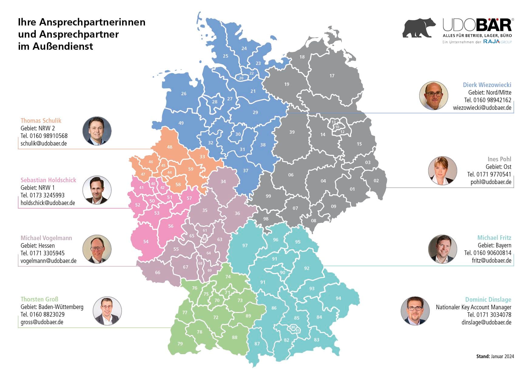 Unser Team von Außendienstmitarbeitern steht Ihnen bei allen Einkaufsentscheidungen auf Wunsch auch persönlich vor Ort zur Verfügung. Egal ob Sie bereits Kunde bei uns sind oder sich erst einmal über unsere Produktangebote und Services informieren möchten. Nutzen Sie unsere langjährige Erfahrung und Beratungskompetenz, um auch nicht alltägliche Beschaffungswünsche schneller und effizienter abzuwickeln. Denn UDO BÄR ist mehr als nur ein Katalog oder Online-Shop, unser Team ist immer für Sie da, wenn Sie uns brauchen.