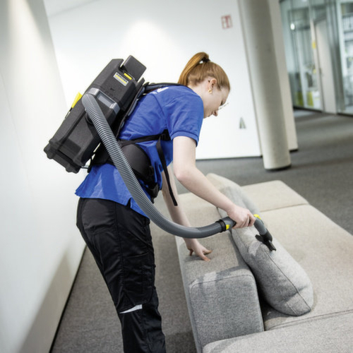 Unser ultraleichter, leistungsstarker und akkubetriebener Rucksacksauger BVL 5/1 Bp ist der erste Sauger, der dank des innovativen EPP-Materials nur < 4,6 kg (Rückentragegewicht) wiegt und dessen Materialeigenschaften gleichzeitig eine besondere Robustheit und Langlebigkeit ermöglichen. Mit einer Leistung von 500 Watt, langer Akkulaufzeit und einem 5 Liter großen Sammelbehälter ist der Rücken-Staubsauger überall dort erste Wahl, wo enge Platzverhältnisse die Reinigungsarbeiten erschweren – ob im Kino, im Flugzeug, in Bussen, Bahnen, bei der Büroreinigung oder auch auf Treppen. Das ergonomische Tragegestell und die durchdachte Bedienung, bei der alle wichtigen Betriebs- und Zusatzfunktionen über ein Bedienfeld am Hüftgurt gesteuert werden, sowie das einfache, für Rechts- und Linkshänder ausgelegte Handling sorgen für komfortables, ermüdungsfreies Arbeiten. Der bürstenlose EC-Motor ist zudem sehr beständig gegen Verschleiß. Diverse Zubehöre werden mitgeliefert, auch ein HEPA-14-Filter ist optional erhältlich. Bitte beachten Sie bei Ihrer Bestellung, dass bei dieser Geräteversion der kraftvolle Kärcher Battery Power+-Akku sowie das zugehörige Ladegerät separat zu bestellen sind.
