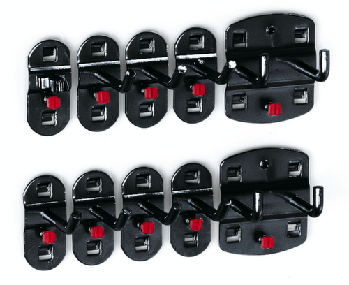 "longDescription": "<h2>Hakensortiment für Lochplatte</h2><strong>für die übersichtliche Lagerung von Arbeitsutensilien</strong><br><ul><li><strong>Passt sich jeder neuen Situation an</strong> - einfach zu versetzen und immer wieder neu zu gestalten</li><li><strong>Langlebig</strong> - aus Stahl mit Passivierung mit Nano-Keramik</li><li><strong>Robust</strong> - mit Kunststoffbeschichtung mit einbondierten Aluminium-Pigmenten</li></ul>",