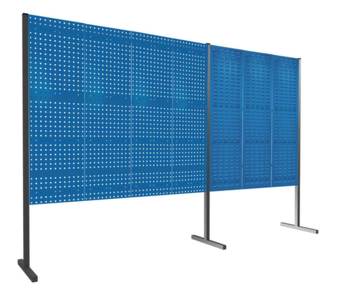 "longDescription": "<h2>Loch-/Schlitzplatten-Trennwand</h2><strong>die flexible Verbindung zwischen Arbeitsplätzen</strong><br><br>Schlagen Sie zwei Fliegen mit einer Klappe! Diese praktische Systemtrennwand ist Raumteiler und Aufbewahrungsort in einem. Die Wand ist aber auch als platzsparende Ecklösung einsetzbar.<br><br>Jede Systemtrennwand ist sowohl mit Lochplatten als auch mit Schlitzplatten ausgestattet. Beide Arten von Platten sind dazu ausgelegt, um Kästen für Kleinteile, Werkzeughalten und vieles mehr aufzunehmen. Dadurch schaffen Sie noch mehr Ordnung am Arbeitsplatz und das Suchen nach Werkzeug hat ein Ende.<br><br>Erhältlich ist die Trennwand in verschiedenen Größen und in den Farben lichtgrau und enzianblau. <br><br>Bei uns erhalten Sie auch eine Menge passendes Zubehör wie zum Beispiel Werkzeughalter, Ablageböden, Magnete und Kästen. Bestellen Sie das passende Zubehör am besten direkt mit gestalten Sie sich Ihre individuelle Trennwand! Damit nutzen Sie die Systemwand optimal aus und verschenken keinen Platz. <br><ul><li><strong>Individuell kombinierbar</strong> - als raumteilende Arbeitswand oder als raumsparende Ecklösung</li><li><strong>Robust und kratzfest</strong> - aus Stahl mit Pulverbeschichtung</li><li><strong>Einfache Montage</strong> - in Verbindung mit Querverbindern mit aufgesetzten Muttern einfach zu verschrauben</li></ul>",