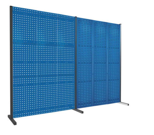 "longDescription": "<h2>Loch-/Schlitzplatten-Trennwand</h2><strong>die flexible Verbindung zwischen Arbeitsplätzen</strong><br><br>Schlagen Sie zwei Fliegen mit einer Klappe! Diese praktische Systemtrennwand ist Raumteiler und Aufbewahrungsort in einem. Die Wand ist aber auch als platzsparende Ecklösung einsetzbar.<br><br>Jede Systemtrennwand ist sowohl mit Lochplatten als auch mit Schlitzplatten ausgestattet. Beide Arten von Platten sind dazu ausgelegt, um Kästen für Kleinteile, Werkzeughalten und vieles mehr aufzunehmen. Dadurch schaffen Sie noch mehr Ordnung am Arbeitsplatz und das Suchen nach Werkzeug hat ein Ende.<br><br>Erhältlich ist die Trennwand in verschiedenen Größen und in den Farben lichtgrau und enzianblau. <br><br>Bei uns erhalten Sie auch eine Menge passendes Zubehör wie zum Beispiel Werkzeughalter, Ablageböden, Magnete und Kästen. Bestellen Sie das passende Zubehör am besten direkt mit gestalten Sie sich Ihre individuelle Trennwand! Damit nutzen Sie die Systemwand optimal aus und verschenken keinen Platz. <br><ul><li><strong>Individuell kombinierbar</strong> - als raumteilende Arbeitswand oder als raumsparende Ecklösung</li><li><strong>Robust und kratzfest</strong> - aus Stahl mit Pulverbeschichtung</li><li><strong>Einfache Montage</strong> - in Verbindung mit Querverbindern mit aufgesetzten Muttern einfach zu verschrauben</li></ul>",