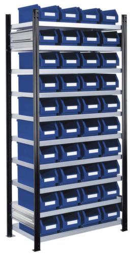 "description": "Grundfeld, HxBxT 2000x1000x400mm, 40 Kästen PE, Fachlast 125kg, 10xStahlboden, einseitig, Ständer anthrazitgrau, Ebenen verzinkt",