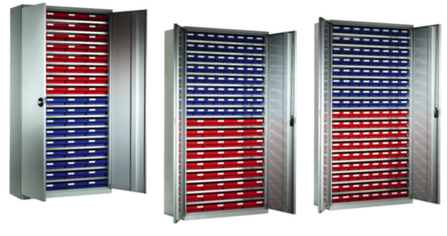 "description": "HxBxT 1950x1000x500mm, Korpus/Front RAL7035/RAL7035,100 Kästen, 16xStahlboden, Zyl.-Schl., Füße",
