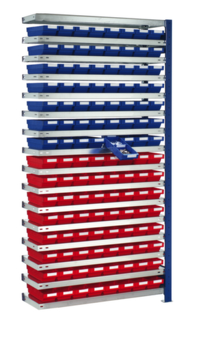 Die wichtigsten Maße des Kappes Behälterregals auf einen Blick:Übersichtliche Kleinteilelagerung auf 16 Ebenen mit Stahlboden und 120 Kästen. Ebene(n) mit Sicherheitskantung zum Schutz vor Verletzungen. Fachhöhen je nach Einsatzzweck und Ihrem Bedarf im Raster von 25 mm verstellbar. Nutzung einseitig - zur Aufstellung an der Wand konzipiert. Konstruktion aus Stahl. Ständer mit schlag- und kratzfester Pulverbeschichtung in RAL5010 Enzianblau. Ebenen mit korrosionsschützender Zinkbeschichtung.