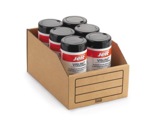 Aus Karton, 1-wellig, in braun mit Außendecke aus Kraftpapier. Hergestellt aus 72 % recyceltem Material. Eingriff über Sichtöffnung. Platzsparend zu lagern, denn bei Bedarf ist der Regalkasten blitzschnell zusammengefaltet.