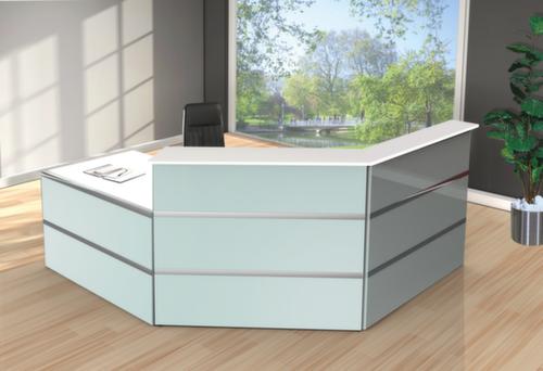 "metaDescription": "Kerkmann Gerade Anbautheke Atlantis - HxBxT 1080x1350x1015mm, Platte weiß, Front weiß, Front Glas",