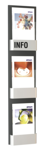 "longDescription": "<h2>Prospekthalter</h2><strong>für eine übersichtliche Informationspräsentation<br>inkl. Schriftfolie \"INFO\"</strong><br><ul><li><strong>Schutz vor Staub und Herausfallen</strong> - einsteckbare Prospektfächer aus Acrylglas</li><li><strong>Robust und schlagfest</strong> - stabile Stahlkonstruktion mit Pulverbeschichtung</li></ul>",