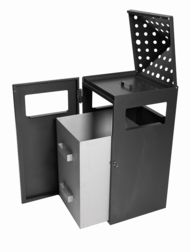 Tür (Innenbehälter herausnehmbar) und hochklappbares Schutzdach