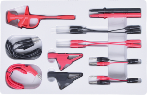 "longDescription": "<ul><li class=\"liste\">zur Verwendung mit Funktionsprüflampen und Multimetern an Verbrauchern und Stromkreisen</li><li class=\"liste\">einfacher und sicherer Signalabgriff durch Direktkontaktierung</li><li class=\"liste\">hochwertige Prüf- und Test-Zubehörkomponenten für unterschiedliche Messleitungen, Prüfkabeln und Teststrippen für den professionellen Mechaniker</li><li class=\"liste\">für den täglichen Einsatz bei Diagnosen und Fehlerermittlungen</li><li class=\"liste\">kleine Satzzusammenstellung für den vielseitigen Einsatz von z.B. zum Prüfen schlechter Masseanschlüssen, Durchgangstestprüfungen, Polaritätsprüfung oder zum Betreiben elektrischer Aggregate wie Anlasser, Wischermotor, elektr. Fensterheber, elektr. Antennen etc.</li><li class=\"liste\">inklusive Polaritätsprüfer mit Duo-LED zum Prüfen von Hallgebern, Fotosensoren oder ob Injektoren Plus oder Masse gesteuert sind. Wechselt je nach Stromflussrichtung bei positiver Spannung auf rot oder bei negativer Spannung auf grün</li><li class=\"liste\">flexible Silikonkabel</li><li class=\"liste\">extra dünne Prüfspitzen</li><li class=\"liste\">anwendbar bis maximal 24V (10A)</li><li class=\"liste\">Bi-Color-Prüfkabel für Polaritätsanzeige</li></ul><br><br><strong>Enthaltene Teile:</strong><br>- 1 x Messleitungs-Verlängerung mit Doppel Stecker und zusätzlicher Buchse 1.100 mm (rot)<br>- 1 x Messleitungs-Verlängerung mit Doppel Stecker und zusätzlicher Buchse 1.100 mm (schwarz)<br>- 1 x Injektions-Prüfspitze<br>- 2 x Polaritätsprüfer mit 4,0mm Bananenstecker-Anschluss und Duo-LED<br>- 2 x 4,0 mm Eingangsbuchse auf nadelförmige Prüfspitze, schwarz<br>- 2 x 4,0 mm Eingangsbuchse auf nadelförmige Prüfspitze, rot<br>- 1 x 4,0 mm Eingangsbuchse auf Prüfspitze, schwarz<br>- 1 x 4,0 mm Eingangsbuchse auf Prüfspitze, rot<br>- 1 x 4,0 mm Eingangsbuchse auf Krokodilklemme schmal, rot<br>- 1 x 4,0 mm Eingangsbuchse auf Krokodilklemme schmal, schwarz<br>",