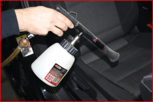 "longDescription": "<ul><li class=\"liste\">ideal geeignet zur professionellen Reinigung von Polstern, Türholmen, Lüftungskanälen, Teppiche, Fußmatten, Stoffsitze etc.</li><li class=\"liste\">druckluftbetrieben mit einfacher Handhabung</li><li class=\"liste\">einzigartige, zyklonische, kugelgelagerte Rotations-Reinigungstechnologie</li><li class=\"liste\">effizient und energiesparend durch gezielt erzeugte Luftverwirbelungen</li><li class=\"liste\">für alle möglichen Oberflächen, feucht oder trocken zu reinigen</li><li class=\"liste\">auch für schwer erreichbare Stellen geeignet, z.B. zwischen den Sitzen und Nähte</li><li class=\"liste\">durch die fein zerstäubte Reinigungslösung trocknen die gereinigten Oberflächen besonders schnell</li><li class=\"liste\">mit Druckregulierer</li><li class=\"liste\">inklusive 360° drehbarem und 30° abwinkelbarem Kugelgelenk-Stecknippel</li></ul><br><br><strong>Enthaltene Teile:</strong><br>- 1 x Lufteinlassschraube<br>- 1 x O-Ring<br>- 1 x Splint<br>- 1 x Abzug<br>- 1 x Pin für Abzug<br>- 1 x Griffgehäuse<br>- 1 x O-Ring<br>- 1 x Schraube<br>- 1 x C-Clip<br>- 1 x Ventilfeder<br>- 1 x Ventilstift<br>- 1 x O-Ring für Ventilstift<br>- 1 x O-Ring<br>- 1 x Verschlussschraube Ventil<br>- 1 x Gewindering<br>- 1 x Düsengehäuse<br>- 1 x Schlauch innen<br>- 1 x Gehäusemutter<br>- 1 x O-Ring<br>- 1 x Kugellager<br>- 1 x Zylinder<br>- 1 x Rotor<br>- 1 x Rotorblatt<br>- 1 x Abstandsring<br>- 1 x Splint<br>- 1 x Vordere Rotorplatte<br>- 1 x Kugellager<br>- 1 x O-Ring<br>- 1 x Aluminiumgehäuse<br>- 1 x Düse<br>- 1 x Verschlussmutter<br>- 1 x O-Ring<br>- 1 x Dämpfer<br>- 1 x Sprühdüse<br>- 1 x Gewindemutter<br>- 1 x Schaltventil<br>- 1 x Ansaugrohrverschraubung<br>- 1 x Verschlussmutter für Deckel<br>- 1 x Behälterverschraubung<br>- 1 x Gummistöpsel<br>- 1 x Gewindering<br>- 1 x Deckeldichtung<br>- 1 x Ansaugrohr<br>- 1 x Ansaughülse<br>- 1 x Behälter<br>- 1 x Deckel<br>",