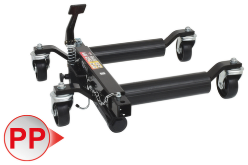 "longDescription": "<ul><li class=\"liste\">universal einsetzbar auf Fahrer- und Beifahrerseite</li><li class=\"liste\">Lenkrollen ermöglichen das Rangieren von Fahrzeugen auf engstem Raum</li><li class=\"liste\">ideal zum Manövrieren von Fahrzeugen auf festem Untergrund</li><li class=\"liste\">leicht rollbar in jede Richtung</li><li class=\"liste\">zur platzsparenden Unterbringung von Fahrzeugen in Reparaturpausen</li><li class=\"liste\">ideal für Ausstellungsräume, Karosseriewerkstätten, Abschleppunternehmen etc.</li><li class=\"liste\">leichte Betätigung durch Fußpedal</li><li class=\"liste\">mit selbstschmierenden Kugellagern</li><li class=\"liste\">vier kugelgelagerte Vollgummi-Lenkrollen</li><li class=\"liste\">Auflagerollen aus Kunststoff</li></ul><br>",